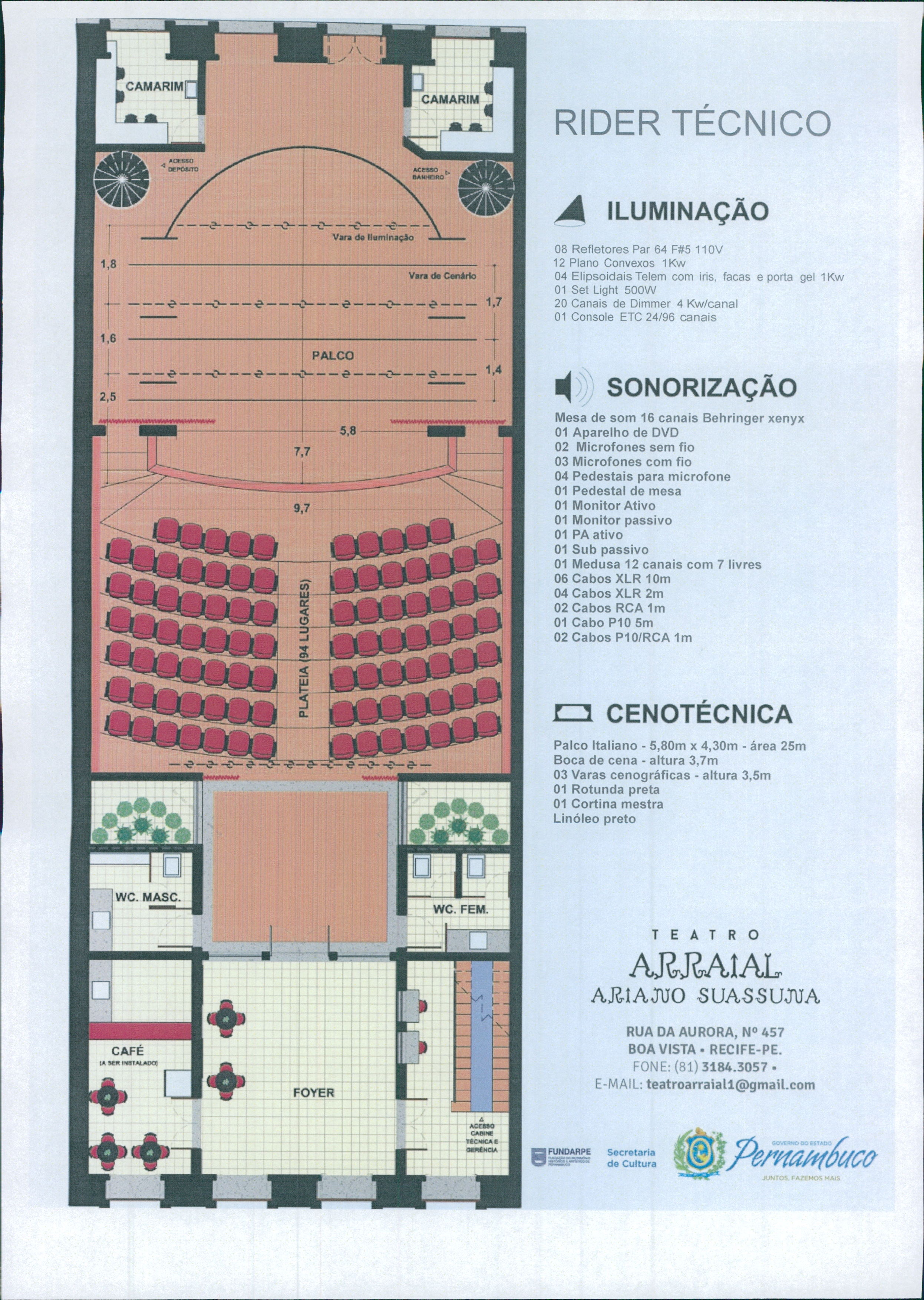 A Secretaria de Cultura do Estado de Pernambuco – Secult-PE e a Fundação do Patrimônio Histórico e Artístico de Pernambuco – Fundarpe, buscando regulamentar a programação de Artes Cênicas do Teatro Arraial Ariano Suassuna, tornam público para conhecimento dos interessados que, no período de 12 a 19 de fevereiro, estarão abertas as inscrições para Ocupação de Pautas do 1º semestre de 2020.