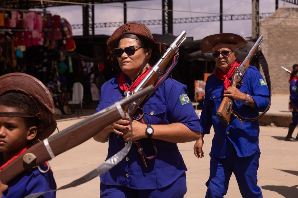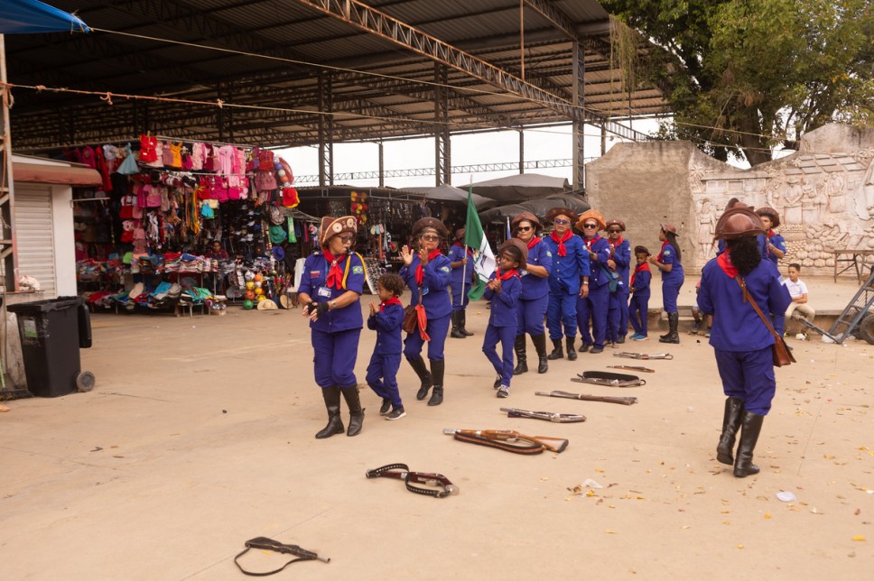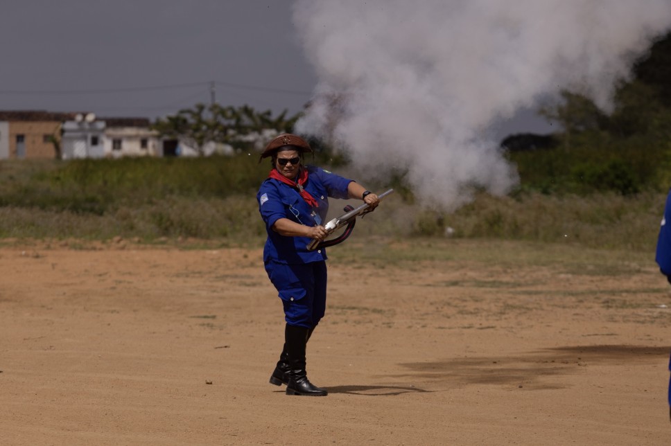 Depois foi a vez dos bacamarteiros darem seu recado. Fundado em 2000, o conjunto conta com 32 componentes e destacou 17 integrantes, com idade entre 5 e 72 anos, para se apresentarem em Buíque, pela primeira desde sua criação, sob o comando de sua presidente, Marleide Tenório. Após a apresentação no pátio e o desfile no mercado, a performance terminou com os tradicionais pipocos dos bacamartes, nos fundos do centro comercial popular, numa verdadeira salva de boas-vindas ao Festival Pernambuco Meu País em Buíque.