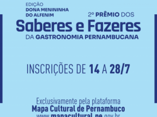 08:59 - Gastronomia | Secult-PE prorroga inscrições de cinco prêmios de incentivo à cultura