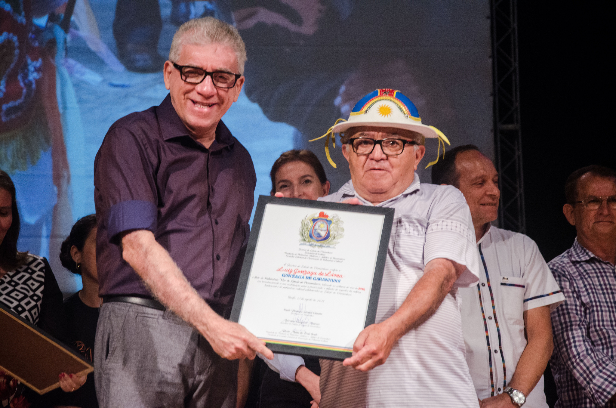 Gonzaga de Garanhuns recebe o título de Patrimônio Vivo de Pernambuco das mãos de Ricardo Leitão, presidente da CEPE Editora, durante o encerramento da XI Semana do Patrimônio, em 2018.