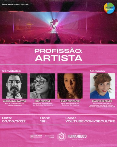 Live “Profissão: Artista”, com participação de Dea Ferraz, Olga Ferrário, Giordano Castro e Ellen Meireles (mediação)