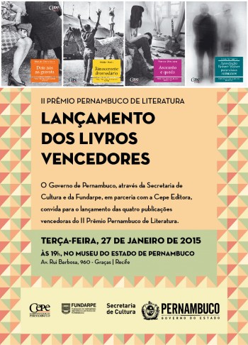 O Governo do Estado, através da Secretaria de Cultura e Fundarpe, em parceria com a Cepe – Companhia Editora de Pernambuco – lança os quatro livros vencedores da segunda edição do Prêmio Pernambuco de Literatura. O lançamento acontece no Museu do Estado (Mepe), na próxima terça-feira (27/01), a partir das 19h.