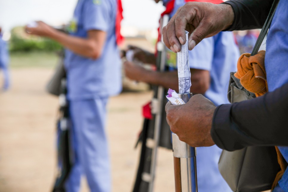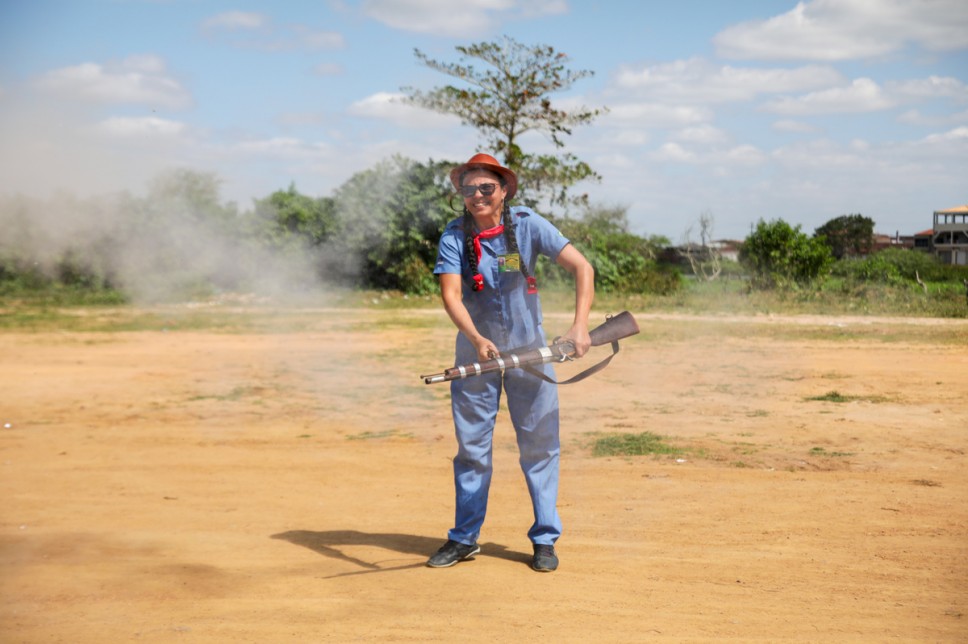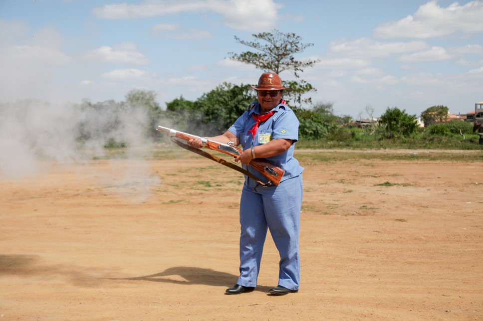 No 21, a mais jovem é Esmerala Eronice da Silva, de 17 anos; o mais experiente em atividade é Miguel da Silva, 78. Em atividade. Porque o grupo, agora sob o comando de José Gilson, 62 (bacamarteiro desde os 12), continua sob a égide de um dos cofundadores do batalhão, José Mandu, 102 anos. Após a performance por dentro do mercado, o Batalhão 21 encerrou sua participação em Buíque com os tradicionais tiros dos bacamartes nos fundos do centro comercial.