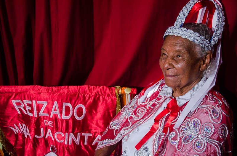 Santa Maria da Boa Vista, no Sertão de Pernambuco, é o nome da pequena cidade que, principalmente durante os meses do ciclo natalino, se engrandece com a tradição cultural secular do reisado, festejo de inspiração católica que encerra a celebração do nascimento de Jesus no dia seis de janeiro, conhecido como Dia de Reis. São cinco grupos tradicionais ativos, o maior número do estado, dentre os quais estão o “Reisado do Inhanhum”, Patrimônio Vivo de Pernambuco, titulado pelo Governo Estadual em 2017, e o “Reizado de Maria Jacinta”, cuja mestra, Maria Jacinta, foi diplomada com o mesmo título em 2021. A Mestra é uma das principais responsáveis por manter viva e transmitir, há pelo menos seis décadas, a tradição das folias dos Santos Reis na região. Nascida em 28 de dezembro de 1924, Dona Maria Jacinta deu início a uma vida dedicada à Folia de Reis desde o final da década de 1950, quando foi convidada para dançar no Reisado da Mestra Antônia Ferro. No entanto, seu primeiro contato com o folguedo veio de laços familiares: seus avós, que já celebravam o reisado “Reis de Palma no Inhanhum”, a colocaram em contato com as primeiras cantigas.