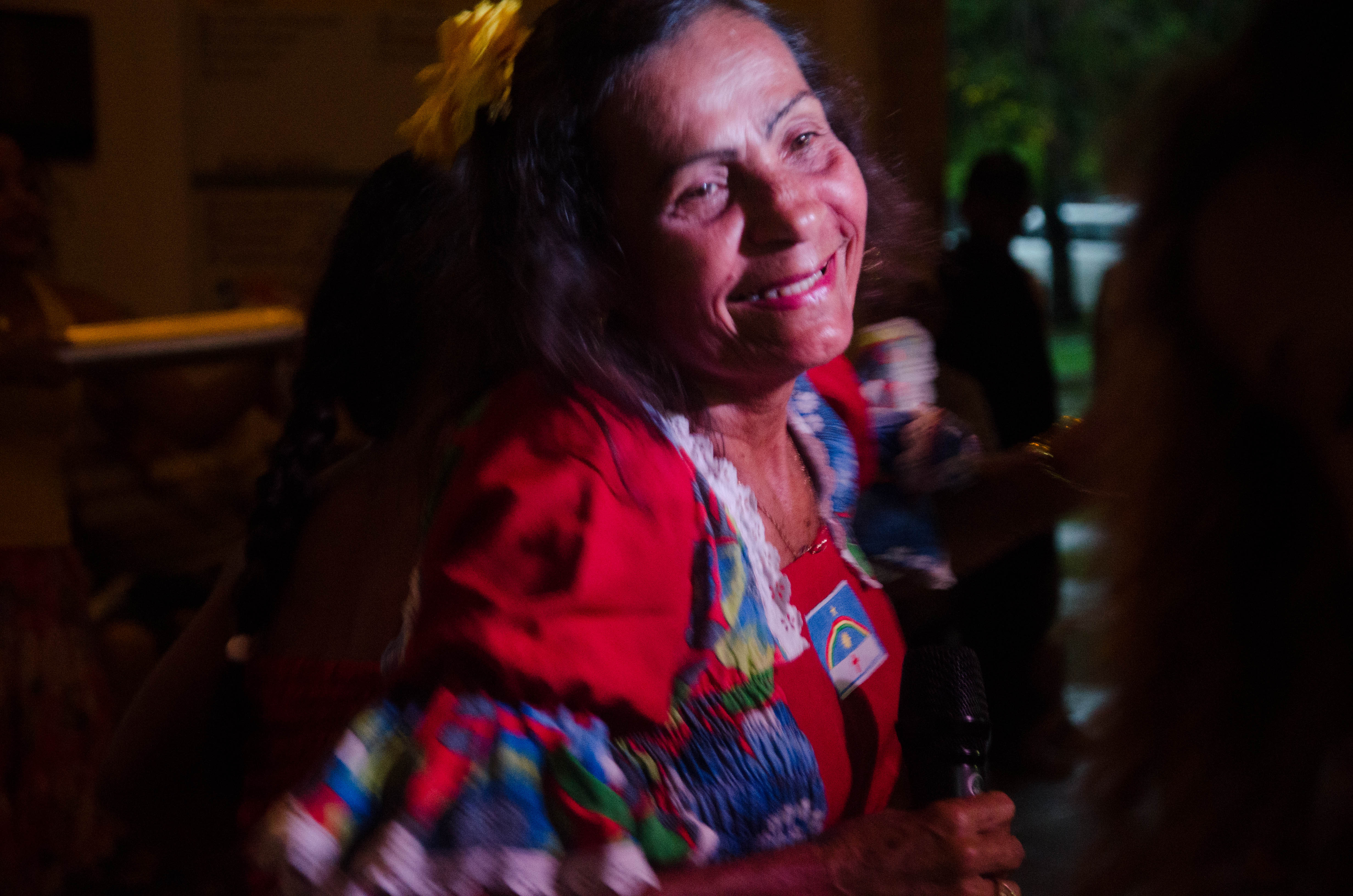 Rodeada de mestres e mestras da cultura popular do Amaro Branco, Ana Lúcia Nunes da Silva nasceu em 29 de março de 1944 e foi discípula e próxima de Dona Jovelina, que além de ter sido sua parteira, é personagem icônico na memória histórica do coco de Pernambuco. No ambiente doméstico, o coco também se fazia presente: Severino Nunes, pai de Mestra Ana Lúcia e grande referência para ela, tinha o costume de trabalhar em casa cantando sempre as melodias dessa manifestação trazidas de Nazaré da Mata, sua terra natal. Além disso, ele organizava grupos de pastoril e de coco, os quais estão presentes na memória afetiva de Ana Lúcia, desde os seus três anos de idade. Não tardou e a coquista assumiu a responsabilidade dos grupos que herdou, fazendo jus à frase que ouvia de seu pai desde pequena: “você já nasceu dentro da cultura”.