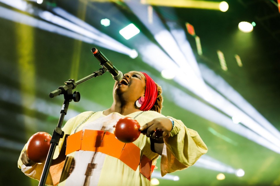 Em seguida, foi a vez de Isaar, uma das maiores vozes da música pernambucana das últimas décadas. Com uma imponente cozinha percussiva, metais afiados, guitarra e baixo, passeando por sonoridades afrolatinas e regionais, a cantora estava sempre com suas maracas e agbês na mão. Isaar entoou a ciranda de Lia de Itamaracá e o brega de Reginaldo Rossi. Celebrou os povos indígenas e quilombolas, a natureza e a arte antes de cantar Olho d’Água, encerrando sua apresentação.