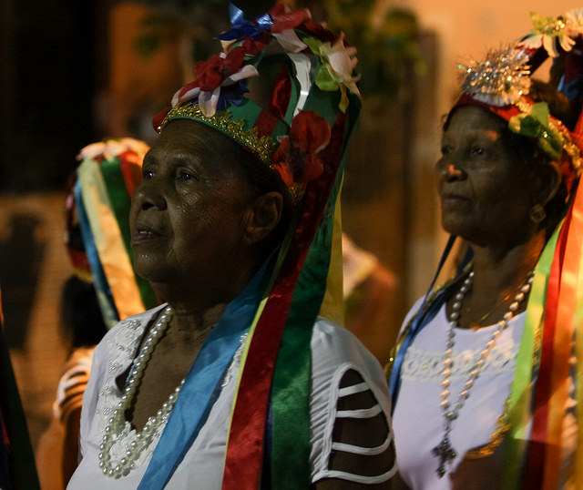 Maria Regina (14 anos) e Ana Vitória (12) são as únicas adolescentes engajadas atualmente. “Comecei em 2014, fizemos um grupo só de gente mais jovem, mais algumas desistiram, não quiseram mais dançar. Agora, com o (título de) Patrimônio Vivo, queremos tentar de novo, chamar novamente o pessoal porque quando o povo mais velho morrer, a gente é que tem que ficar na cultura”, comenta Regina.